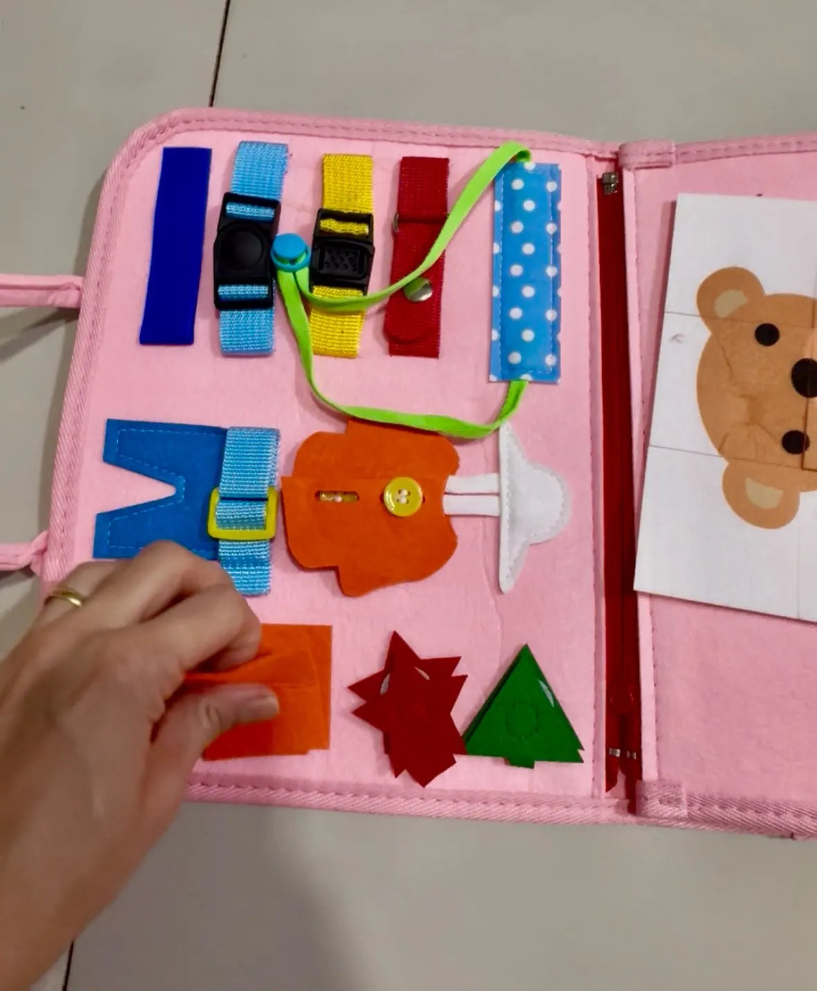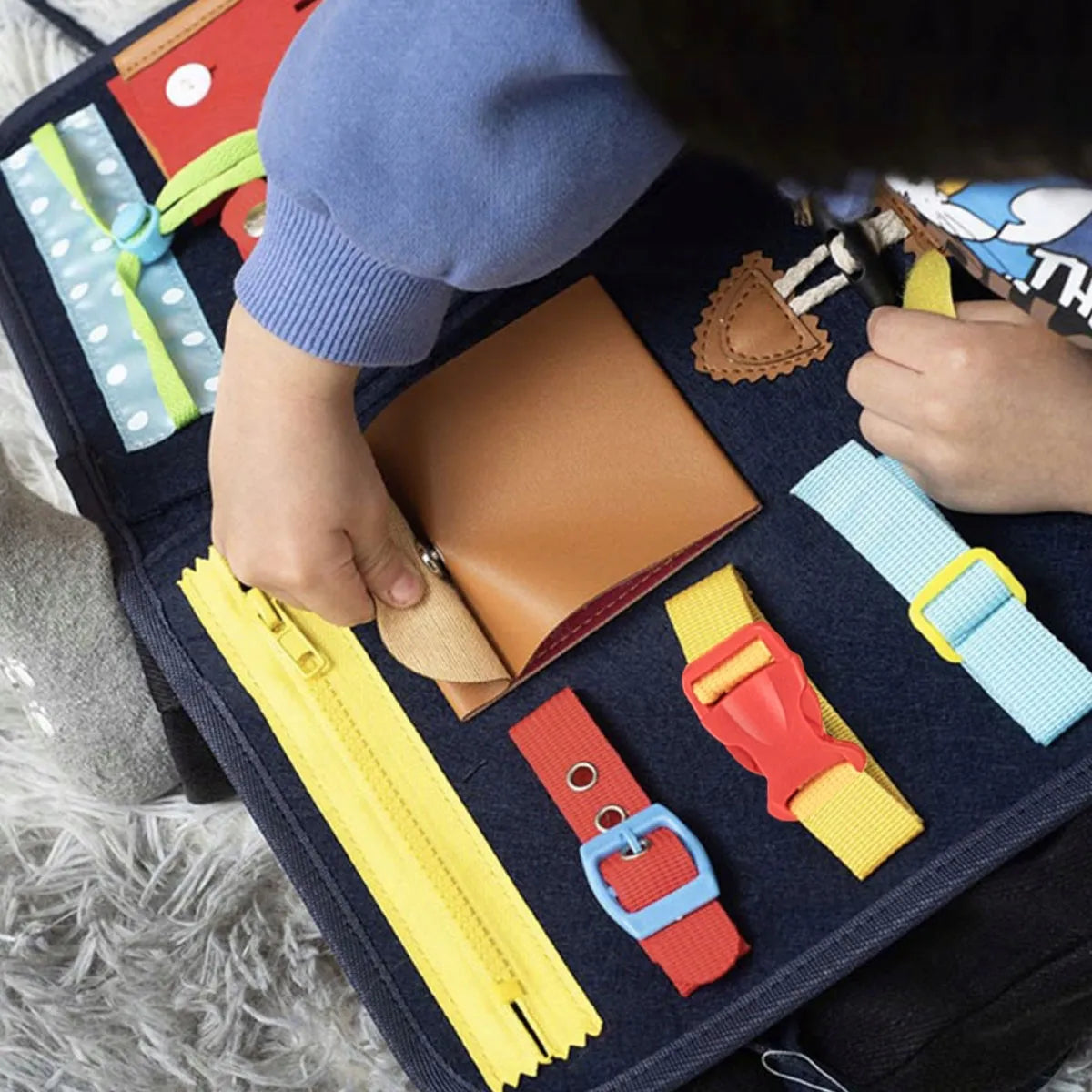 Pagina pratica: lacci, bottoni, fibbie, zip affinano coordinazione, destrezza e autonomia.